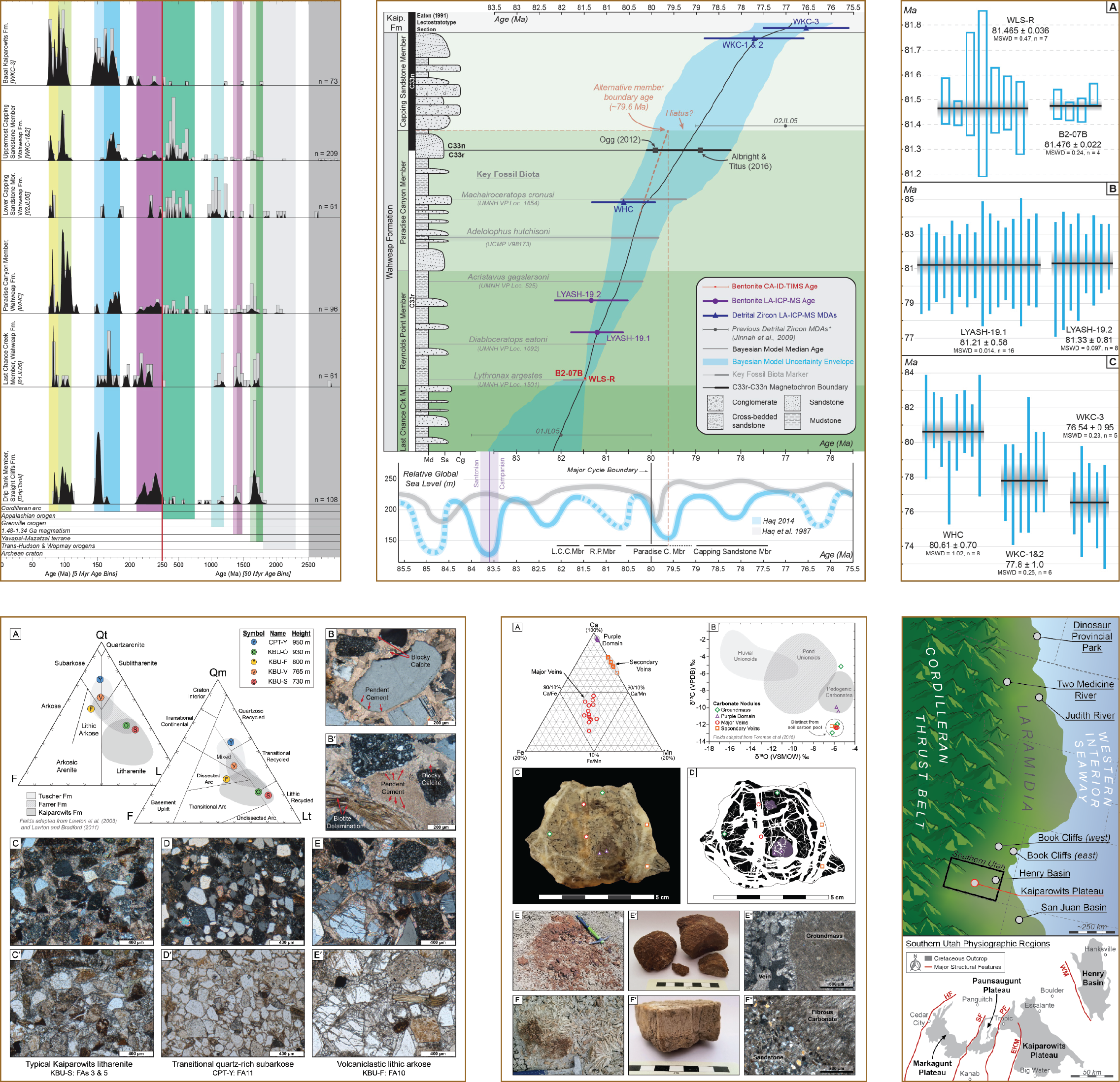 Beveridge, T. L., Roberts, E. M., Ramezani, J., Titus, A. L., Eaton, J. G., Irmis, R. B., & Sertich, J. J. W. (2022). Refined geochronology and revised stratigraphic nomenclature of the Upper Cretaceous Wahweap Formation, Utah, U.S.A. and the age of early Campanian vertebrates from southern Laramidia. Palaeogeography, Palaeoclimatology, Palaeoecology, 591, 110876. doi.org/10.1016/j.palaeo.2022.110876