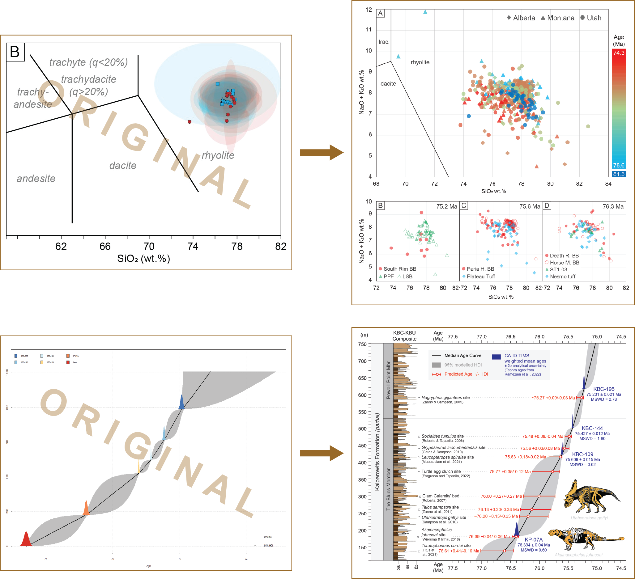 Beveridge, T. L., Roberts, E. M., & Titus, A. L. (2020). Volcaniclastic member of the richly fossiliferous Kaiparowits Formation reveals new insights for regional correlation and tectonics in southern Utah during the latest Campanian. Cretaceous Research, 114, 104527. doi.org/10.1016/j.cretres.2020.104527